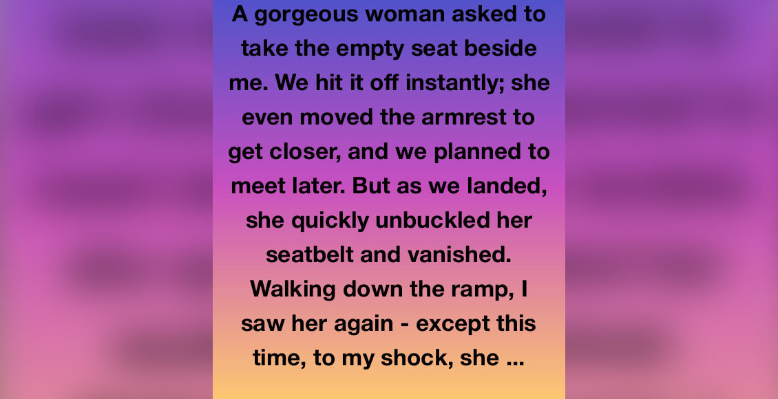 On a flight, she slid into the seat beside me with a smile that felt like sunlight. She called herself Natalie, joked over cheap wine, and traced the scar on her eyebrow while telling me I had kind eyes. By the time we landed, I was floating—until she vanished into the crowd, hand-in-hand with another man.