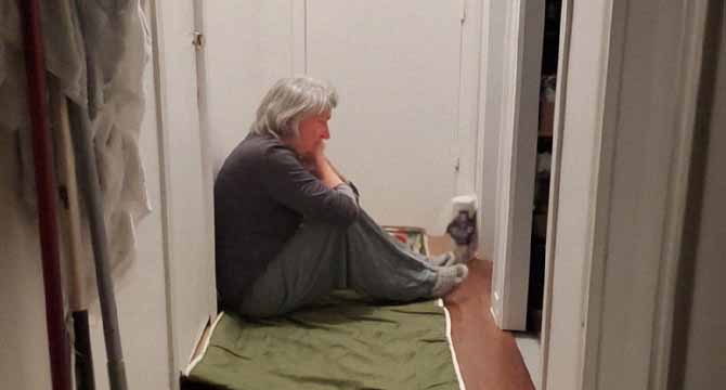 “Where are you? It looks like you’re in a hallway. Mom? Are you… are you sitting on the floor??”