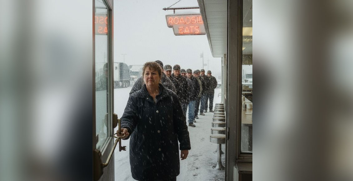 The storm hit harder and faster than expected, burying the roads in white. I wasn’t planning to open the diner, but when a line of stranded truckers knocked, frost in their beards and desperation in their voices, I couldn’t turn them away. I unlocked the door, brewed coffee, and flipped pancakes until silence turned to laughter. That night, strangers became something closer to family—one washed dishes, another played guitar, and the diner, long too quiet, filled with life again.