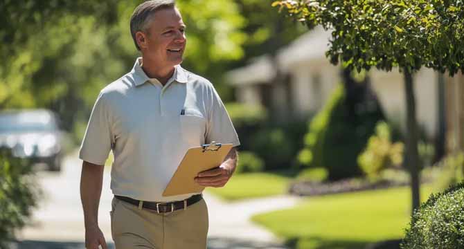 I was out on the porch, minding my business, when I spotted Larry marching up the driveway, clipboard in hand.