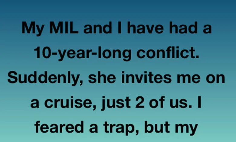 For ten years, my mother-in-law and I clashed over everything—how I cooked, how I parented, how I existed. Then, out of nowhere, she invited me on a cruise. Just us. My husband swore she wanted peace; I suspected a trap. On the first night, a trembling waitress pulled me aside to warn that my travel companion had tried to bribe her to spill a drink on me “as a joke.” I smiled through dinner, said nothing, and slept with one eye open. The next morning the waitress returned—this time with proof. My mother-in-law had left a note and cash, asking that something be slipped into my drink.